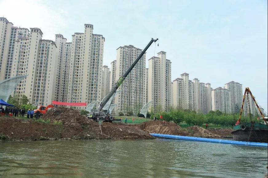 二期工程雖然總長只有3公里,但包括頂涵管穿越漢丹鐵路和沉管穿越唐白河,專業(yè)性強,施工難度大。其中,穿越唐白河段采用水下沉管的方式進行施工。4月9日,輸水管線穿越唐白河工程在位于唐白河下游100米處敷設過江給水管,總長1000m,其中兩岸坡埋管560m,過江管沉管長440m。4月10日,正式開始注水沉管。本項目起點接自航空路DN800市政給水管,通過穿越唐白河河底過江往東津新區(qū)供水。通過該輸水管線,每天供水量可達到5萬噸,滿足10萬人以上的用水。