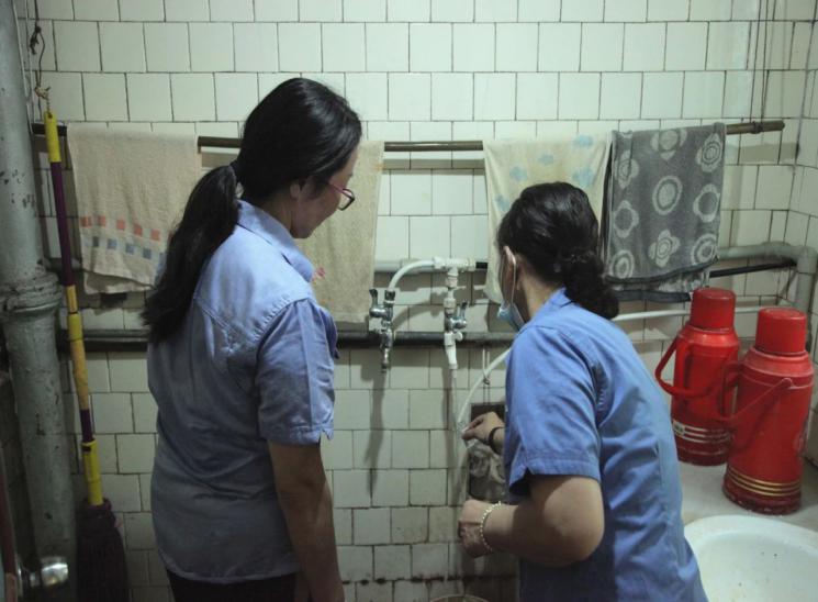 為深入貫徹落實(shí)“我為群眾辦實(shí)事”的要求,把好水質(zhì)“安全關(guān)”,打消市民心中的疑問,水質(zhì)檢測(cè)中心的“水質(zhì)衛(wèi)士”們?cè)谧龊萌粘z測(cè)工作的同時(shí),在中心主任吳非、書記劉霞的帶領(lǐng)下于16日下午走進(jìn)小區(qū),敲開用戶家門,深入市民家中為市民現(xiàn)場(chǎng)檢測(cè)“龍頭水”水質(zhì)。每家檢測(cè)完畢,還為用戶講解渾濁度國(guó)家標(biāo)準(zhǔn)的限制是多少,現(xiàn)場(chǎng)檢測(cè)的是多少。