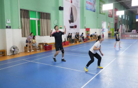 風(fēng)秋景氣爽,健兒競風(fēng)流。在羽毛球賽場上的供水人,手握球拍,跳躍、反手、扣殺……賽場上,人影躍動、羽球翻飛,參賽選手們你來我往、揮拍有力,時而大力扣殺,時而飛身撲救,配合默契、盡顯活力,比賽現(xiàn)場精彩紛呈。