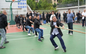 當(dāng)拔河比賽口令響起,只見參賽的隊員們緊握長繩,卯足了勁拼命往后拉,未能上場參賽的候補隊友們?yōu)樽约罕荣愱犛褏群爸?。吶喊聲、歡呼聲此起彼伏,現(xiàn)場激烈的比賽將整個活動推向了高潮。